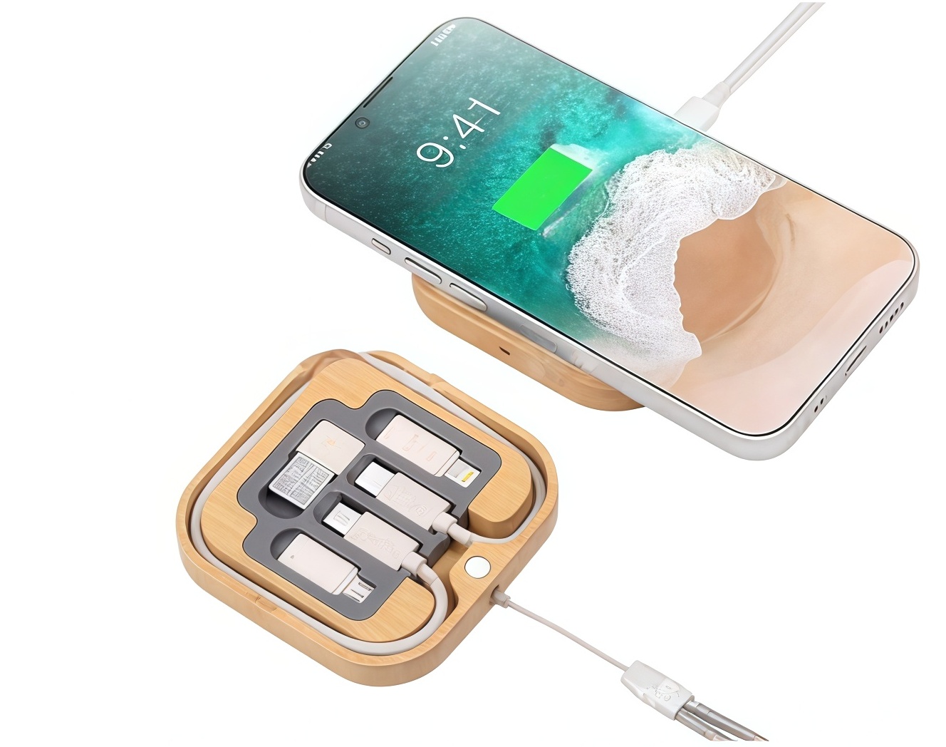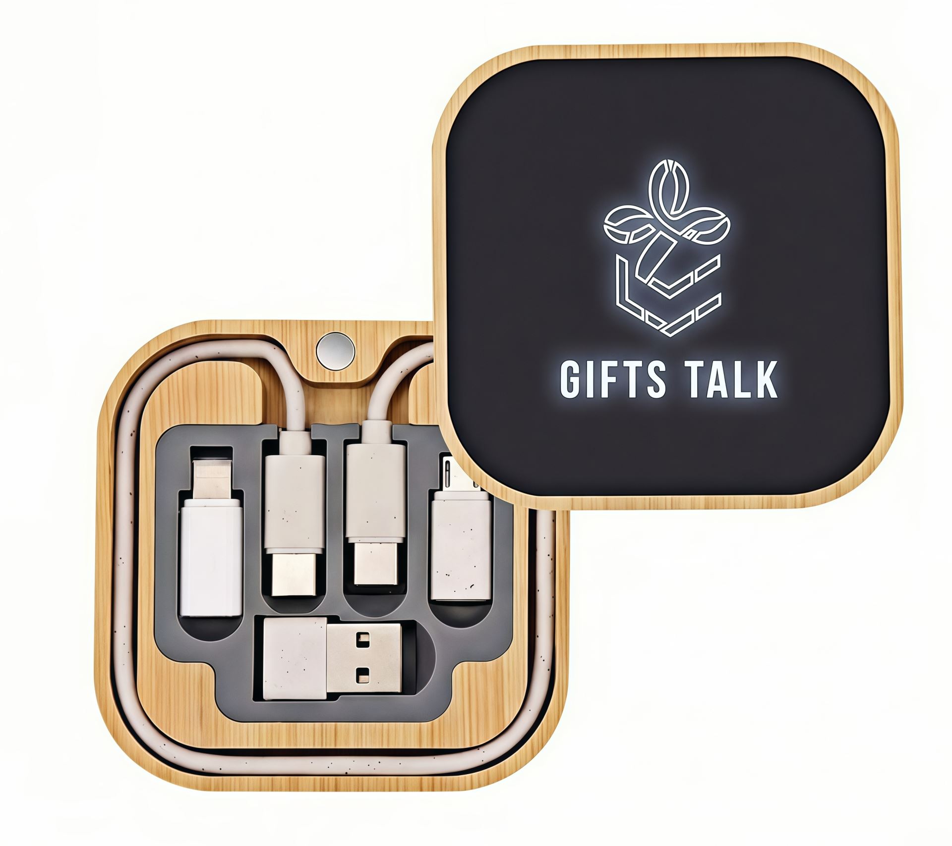 LED Logo Wireless Charge Travel Kit Cable Set - Square