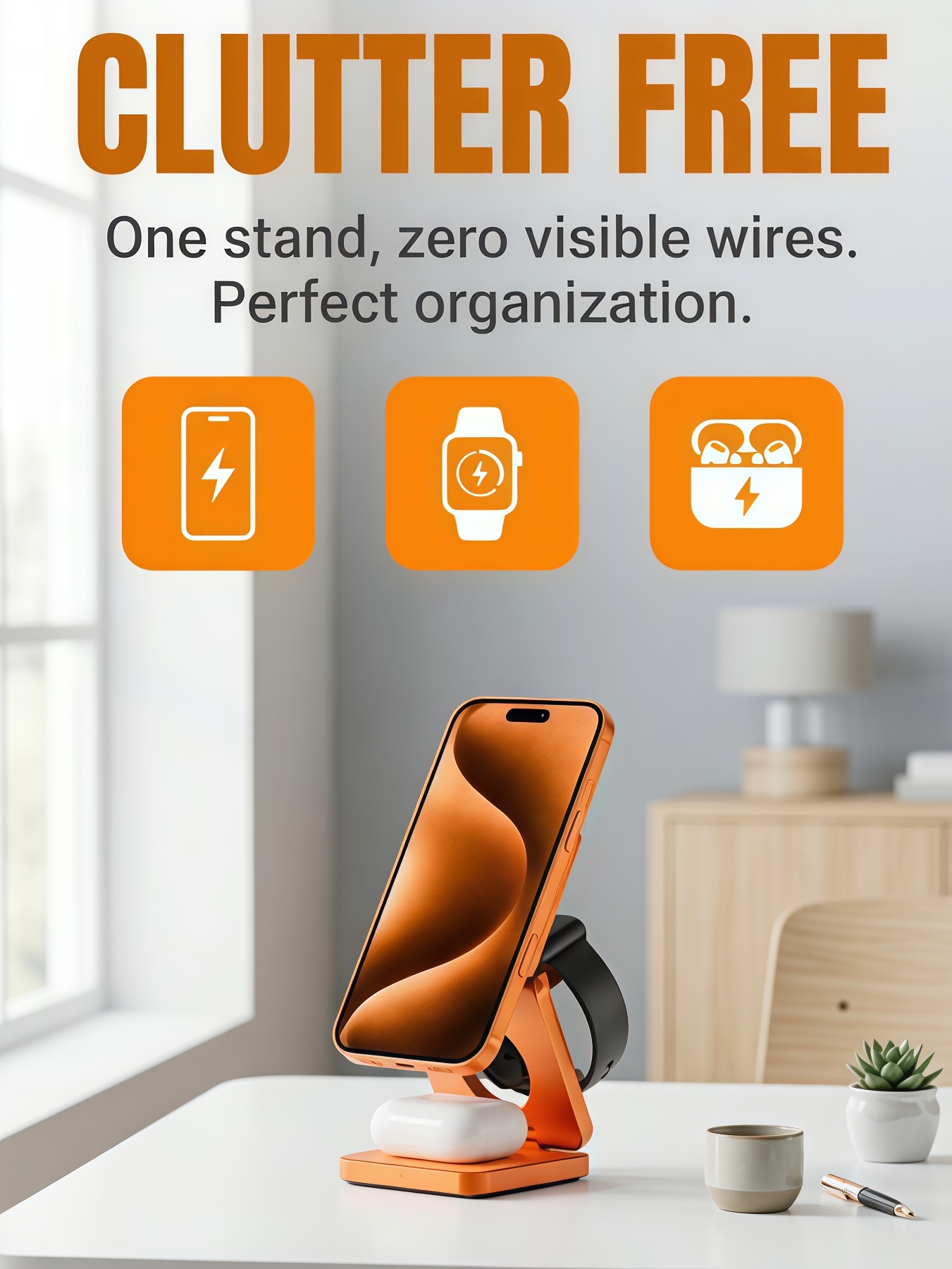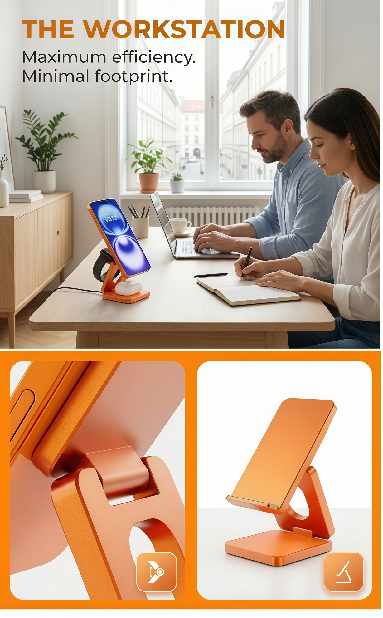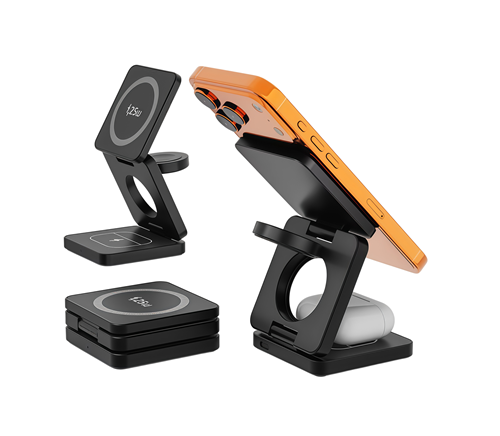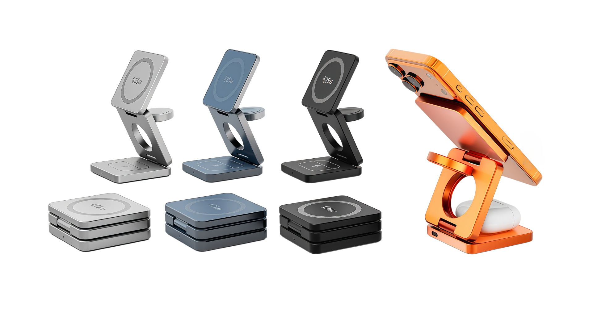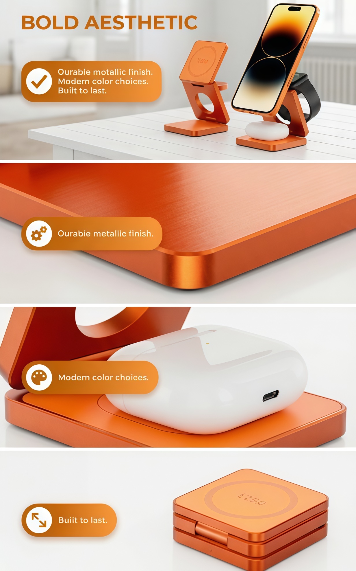 Next-Gen Qi2.2 25W Fast Charging: Unlock ultra-fast wireless charging for your iPhone. Featuring the latest Qi2.2 technology, this charger delivers up to 25W of power (iOS 26+ required), charging the iPhone 17 Pro up to 56% in just 27 minutes—up to 5× faster than standard wireless chargers. (Supports Qi2.2 25W for iPhone 17/16 series; 20W for iPhone 17 Air.) 3-in-1 Simultaneous Ultra-Fast Charging: Charge your iPhone, AirPods, and Apple Watch simultaneously with ease. Enjoy fast charging for your iPhone while powering your AirPods and Apple Watch at up to 5W wireless charging. The included 45W GaN adapter ensures optimal efficiency across all three devices. Note: Power is intelligently distributed during multi-device charging; single-device charging may be faster. Foldable, Ultra-Portable & Adjustable: Folds down to one-third the size of an iPhone 16 Pro Max and weighs just 5.23 oz—perfect for travel. The triple-axis hinge features sturdy damping for enhanced stability. Slight stiffness during first use is normal; adjust gently for smoother operation. Easily switch between flat and stand modes for both portrait and landscape viewing. Strong Magnetic Alignment: Equipped with 16 powerful N52 magnets, ensuring precise alignment and a secure hold for your iPhone. Easily attach or detach your device with one hand for a seamless charging experience. Compatible with magnetic cases. For better heat management, using the charger without a case is recommended. Wide Compatibility: Qi2.2 25W: iPhone 17/16 series, Pixel 10 Pro XL Qi2.2 20W: iPhone 17 Air Qi2 15W: iPhone 12–15 series, Pixel 10 series Up to 5W: Apple Watch Ultra 3/2/Ultra, Series 1–11, SE (3rd/2nd/1st) AirPods: Pro 3 / Pro 2 / Pro / 4 (ANC) / 3rd / 2nd generation with wireless charging case Note: The AirPods charging area is non-magnetic—please align within the marked charging zone. 360 Degree Rotation, Foldable, with magnetic wireless charging