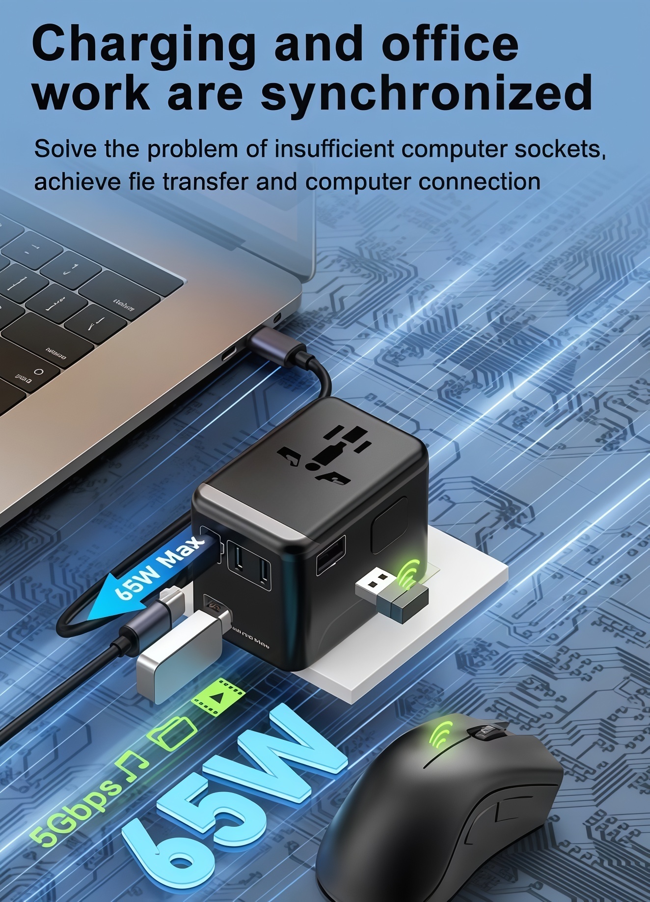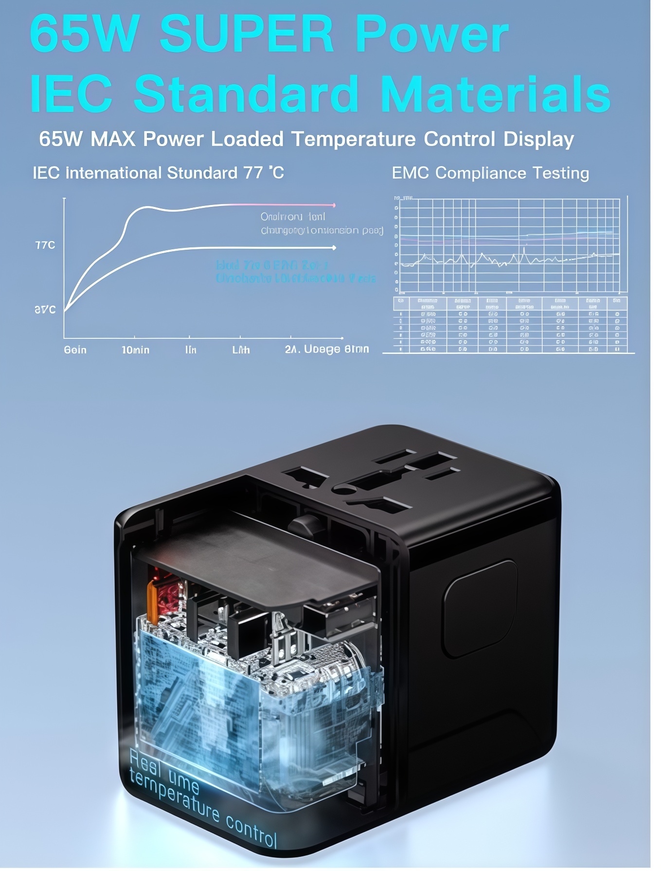 65W GAN Universal Travel Adapter Quick Charger USB/TYPE-C
