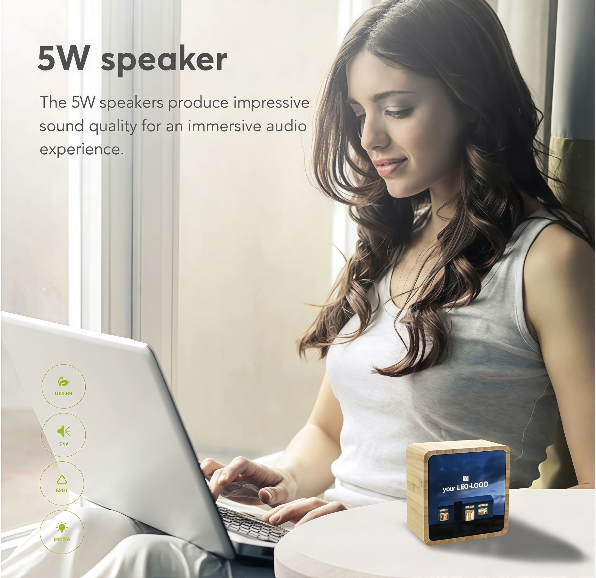 Make your brand shine with this compact, wireless 5-watt Bluetooth speaker that delivers impressive sound and standout style.
