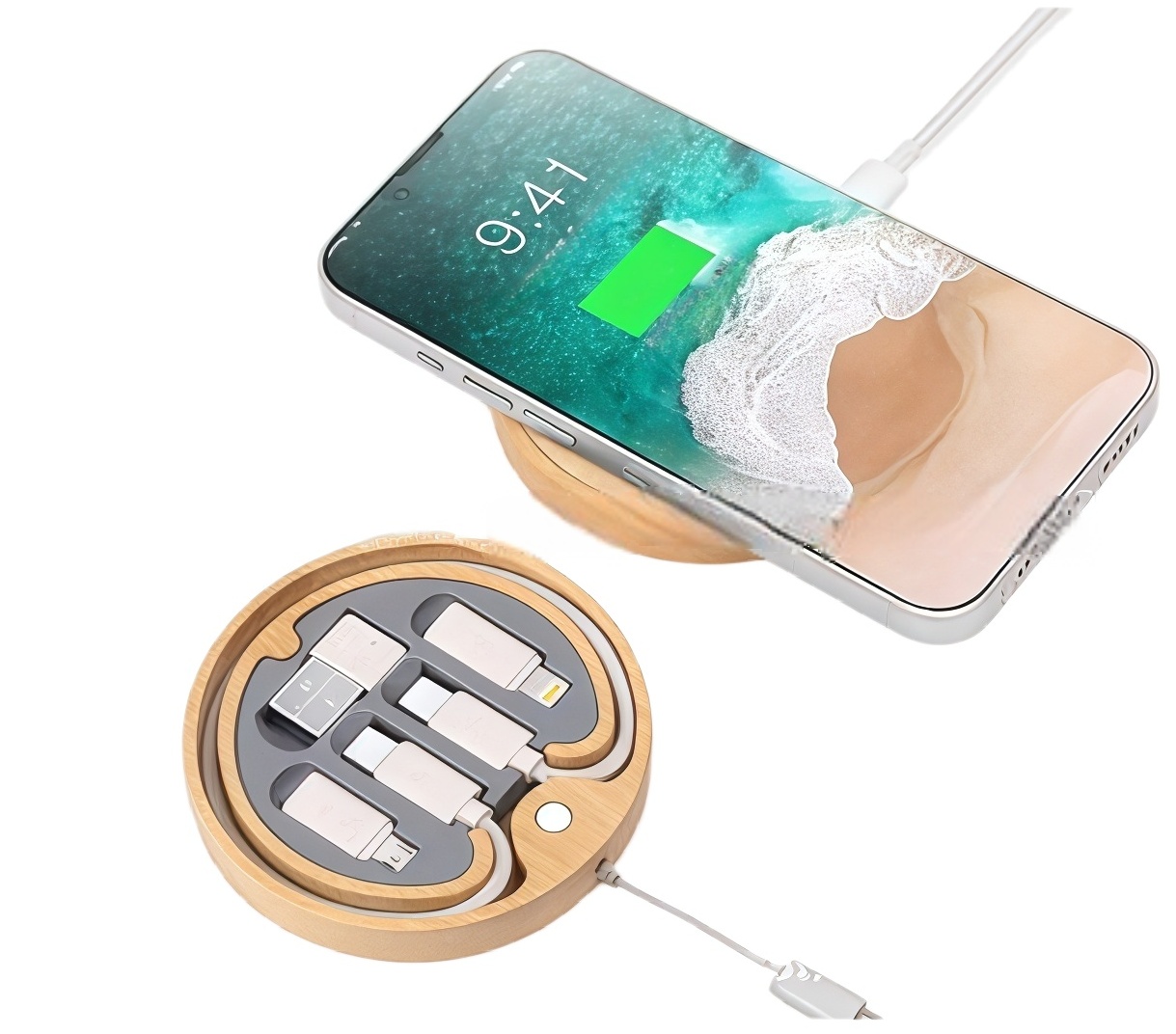 LED Logo Wireless Charge Travel Kit Cable Set - Round