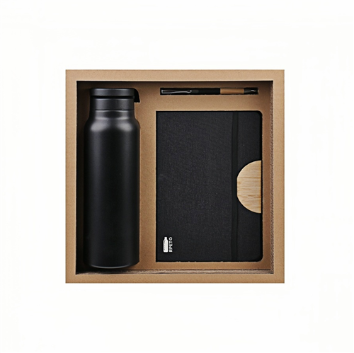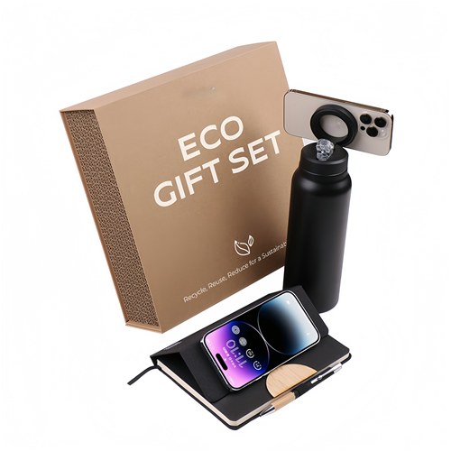 This eco-friendly gift set combines sustainability practicality, and elegant design. Made with recycled and natural materials such as RPET and bamboo, it delivers both modern aesthetics and environmental awareness.