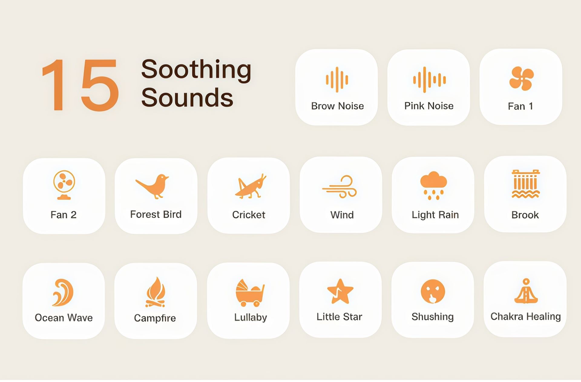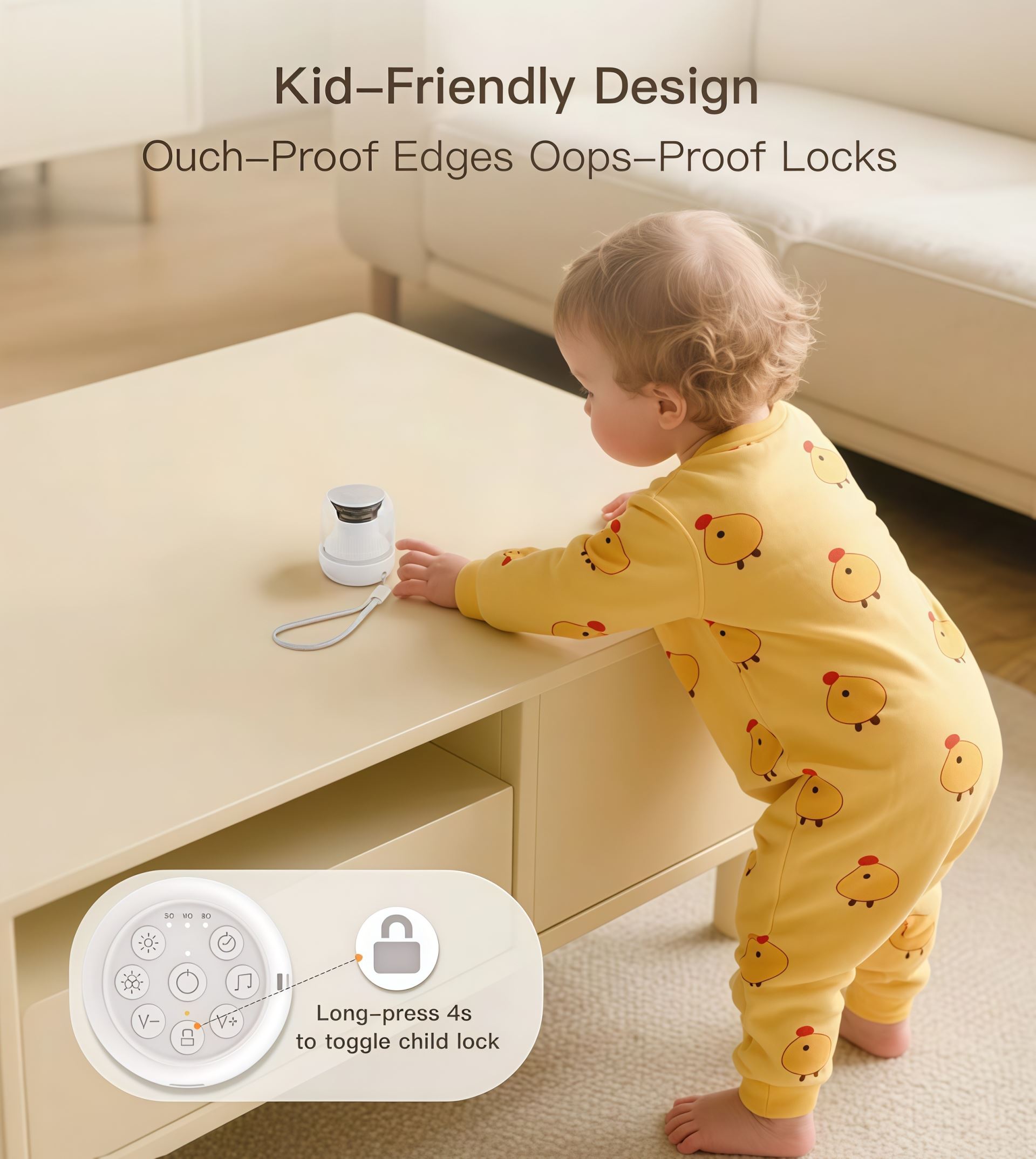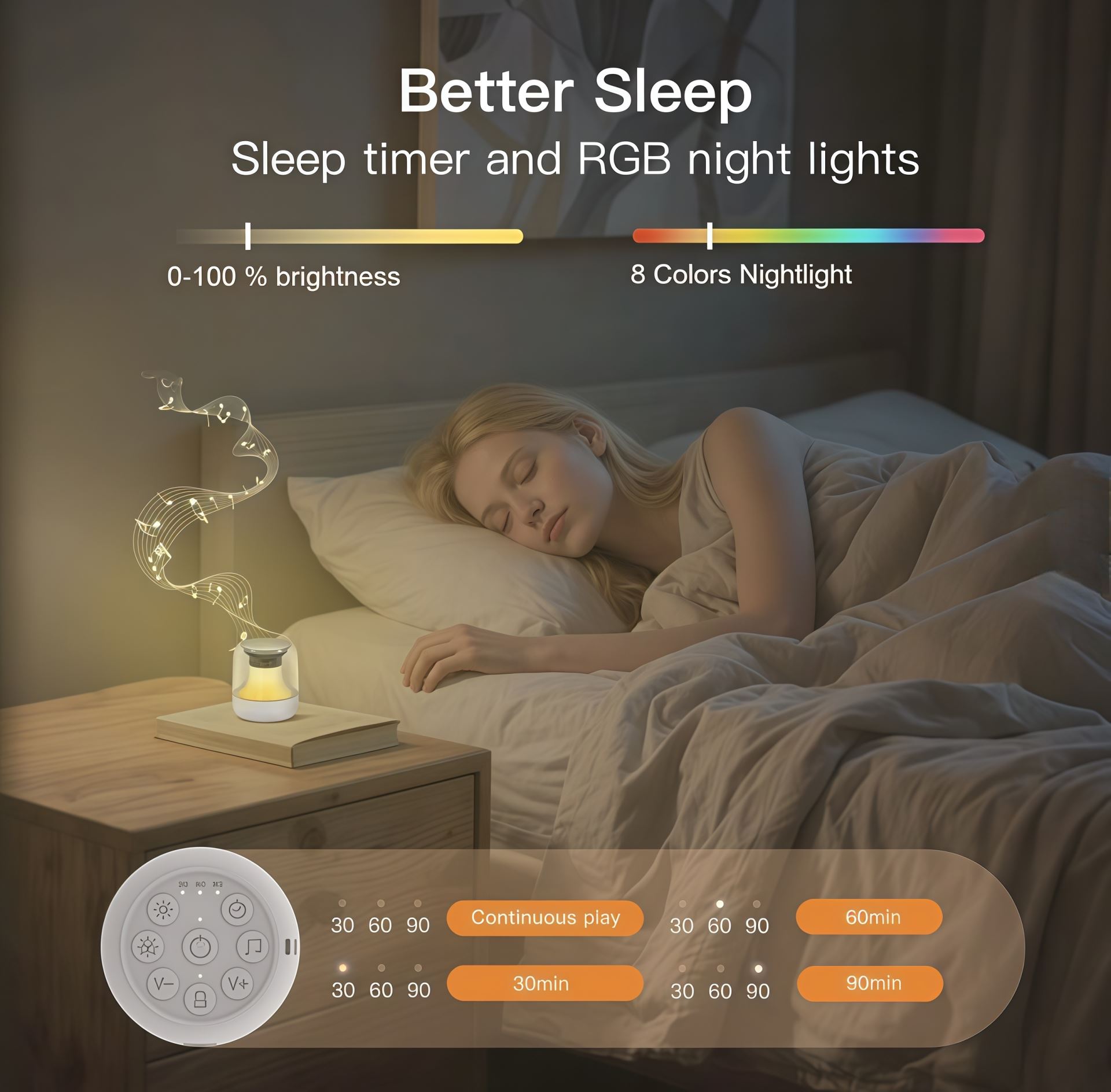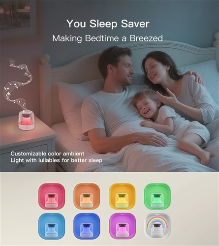 Portable Sound Machine combines 15 soothing sounds, adjustable brightness night light, and a compact design for sleep and relaxation. Certified with CE, FCC, and RoHS, ensuring compliance with international safety and environmental standards, providing market access assurance. With a battery life of up to 7 hours, Type-C charging, and support for customization. Battery Capacity 3.7V 500mA Timer Setting: 30/60/90min Auto Shut Off Work / Charging Time: 7Hours / 2Hous Interface: Type-C Charging Port, Compatible with PD fast charging + overvoltage protection
