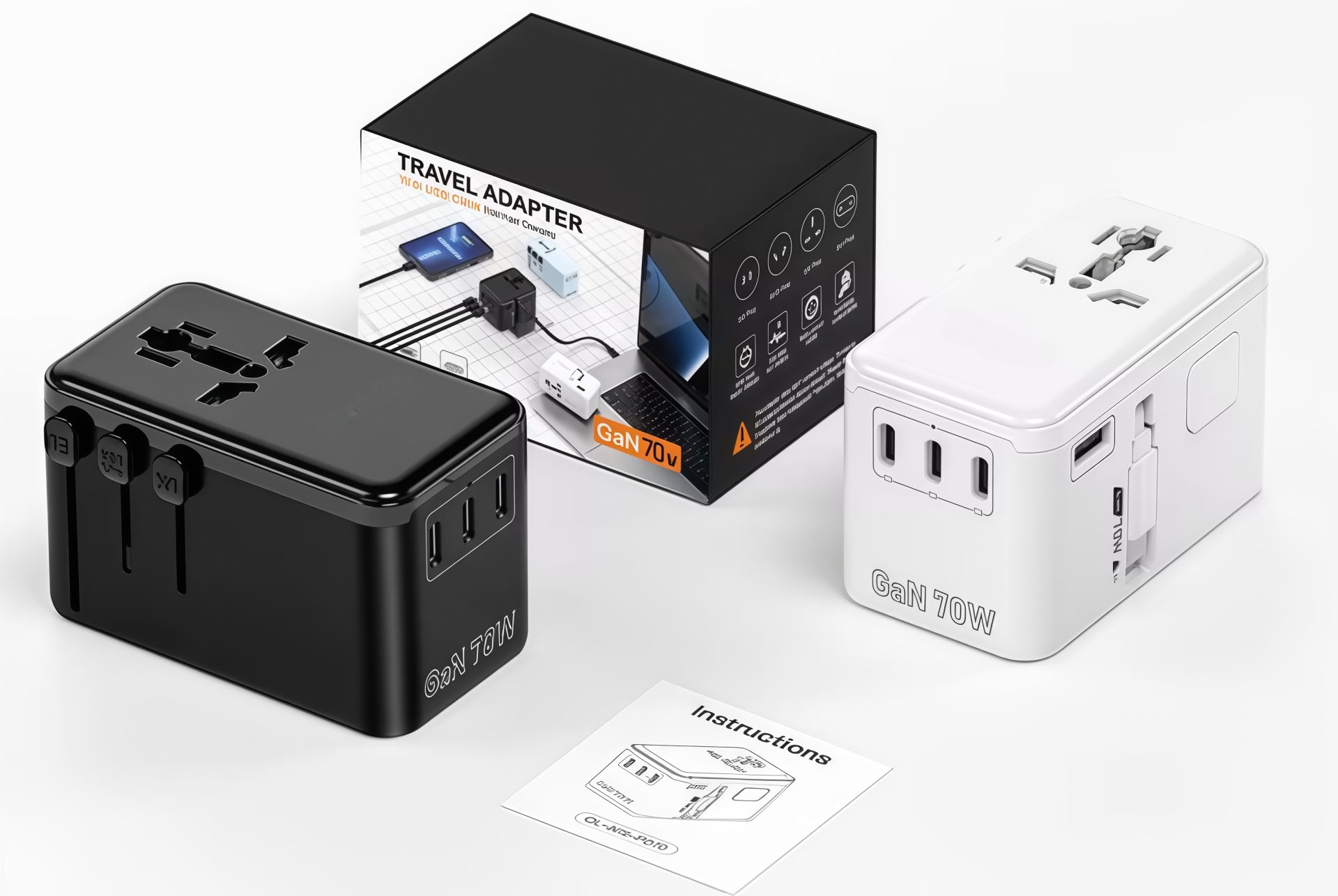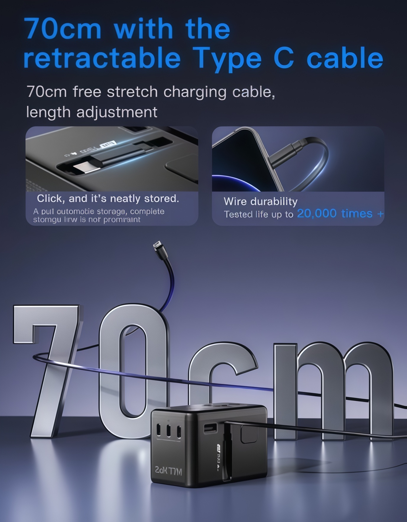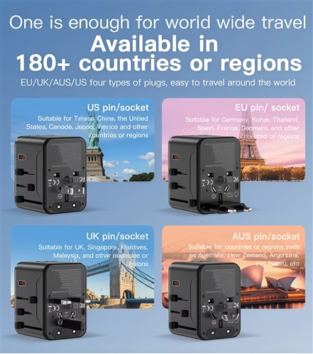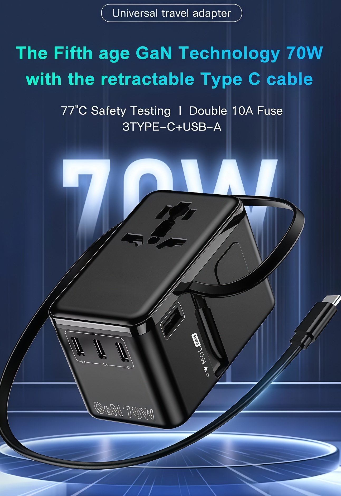 PD70W 3 Type C Port and Retractable Cable Universal Travel Adaptor