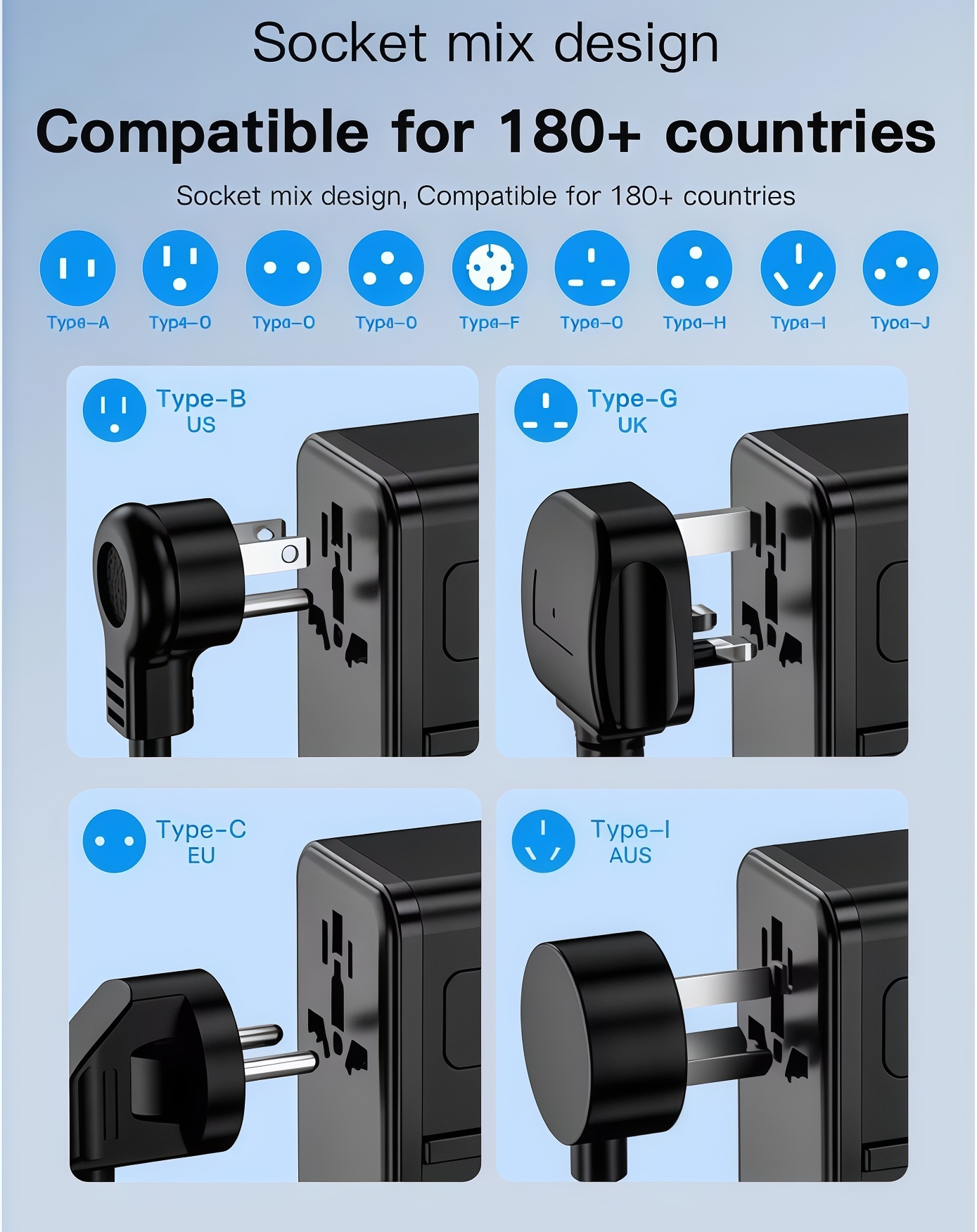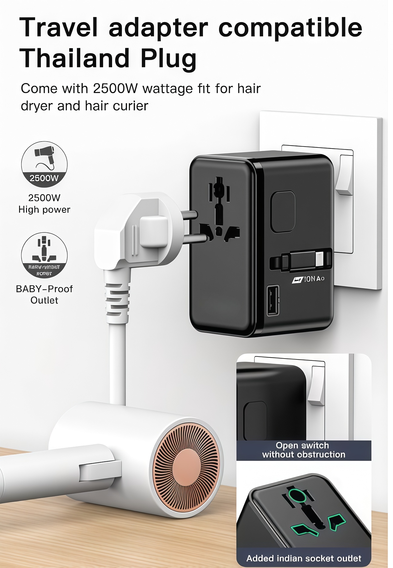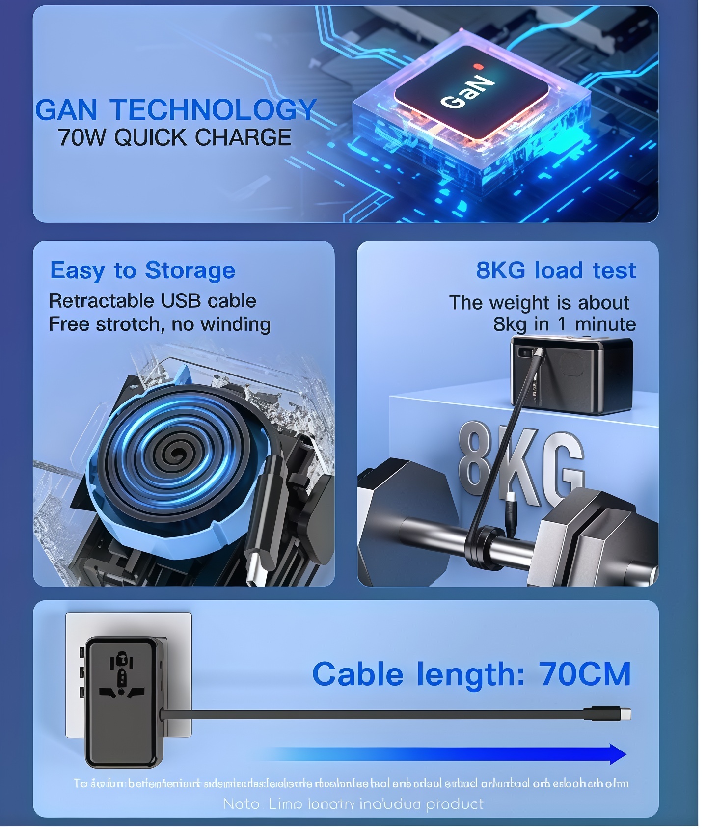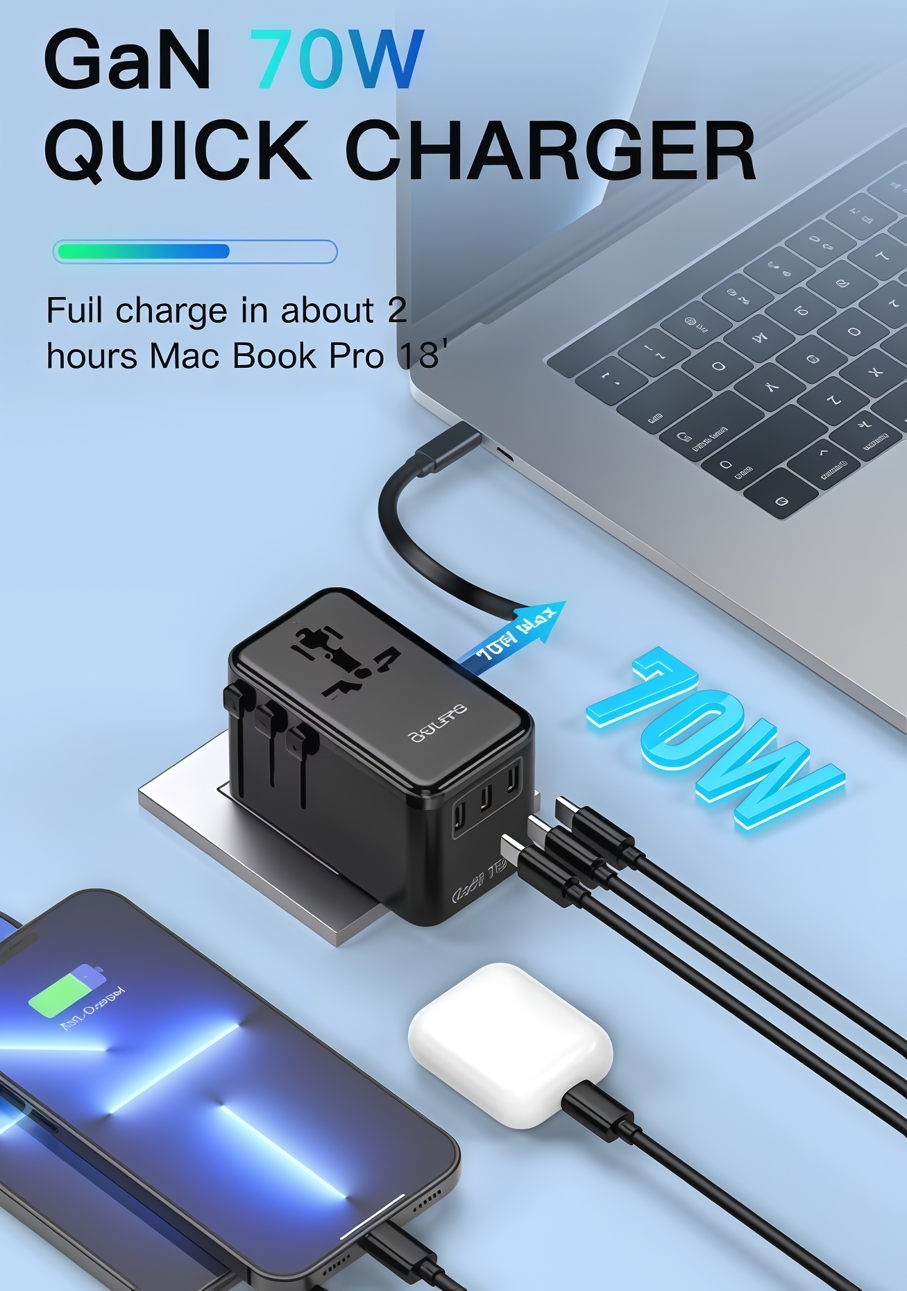 PD70W 3 Type C Port and Retractable Cable Universal Travel Adaptor